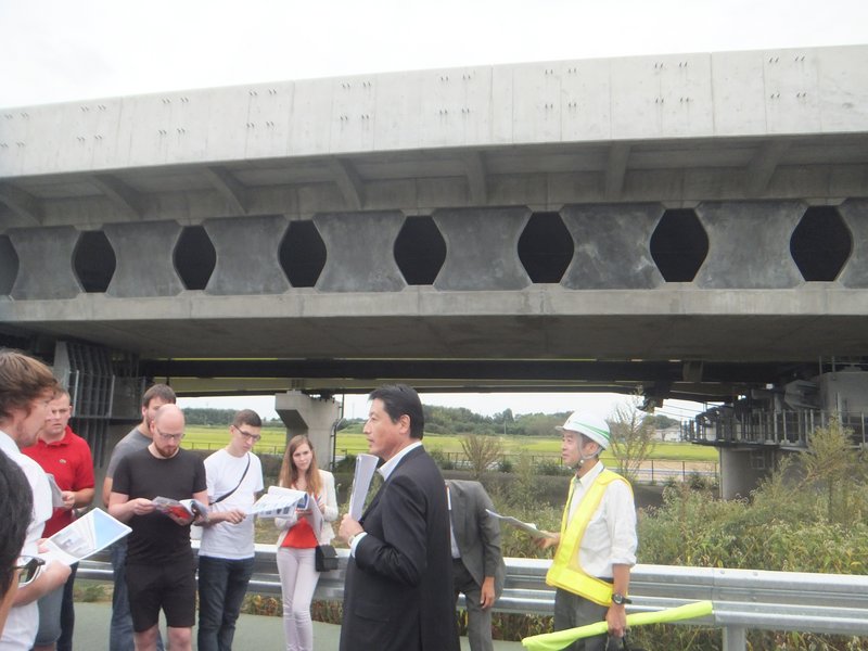 Die Exkursionsgruppe durfte der Einladung des ansässigen Ingenieurbüros, Nippon Engineering, folgen. Das Büro präsentierte einige aktuelle Projekte. Es wurden uns dort unter anderem aufwendige 3D Berechnungen von Tsunamiüberschwemmungen sowie Erdbebensimulationen präsentiert. Dieses vergegenwärtigte uns die Problematik der Naturkatastrophen der die Ingenieure in Japan begegnen müssen. Der Abend endete mit einem Vortrag von Prof. Mitsuhiro Kanada an der Tokyo University of the Arts und anschließender Diskussion mit Shigeru Hikone (Arup Japan). Dabei wurde uns anhand von Projekten über die Arbeitsweise von japanischen Ingenieuren und Architekten berichtet. Der dritte Tag führte uns vormittags auf eine Baustelle von Sasaki (Ing.) und Toyo Ito (Arch.), auf der ein Schalentragwerk aus Ortbeton für ein Krematorium hergestellt wurde. Nachmittags empfing uns das Digital Fabrication Lab an der University of Tokyo. Dort und beim anschließenden Abendvortrag von Prof. Jun Sato wurden uns Einblicke in dortige Forschungsschwerpunkte unter anderem zu den Themen Parametric Design und Formoptimierung gegeben.