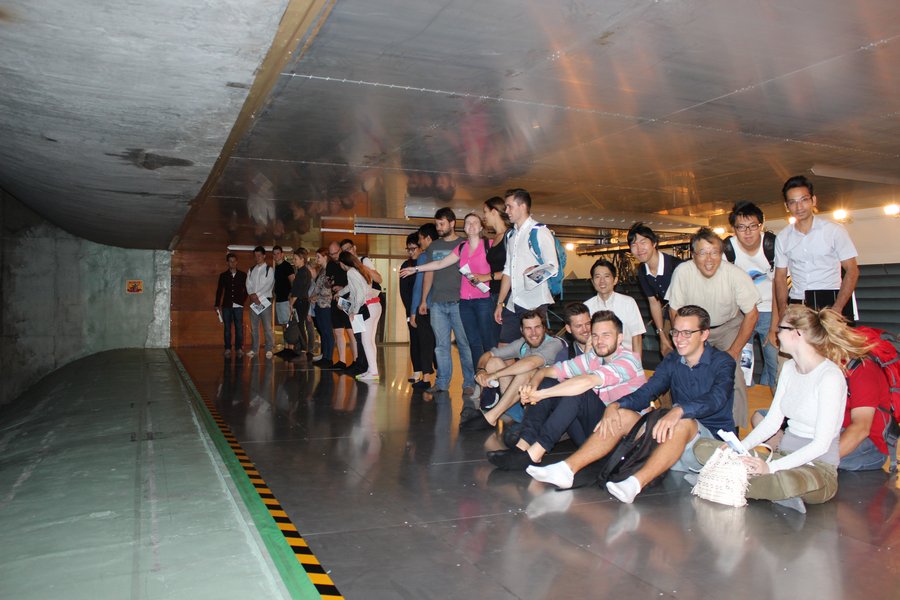 Am 28. September besuchten wir die IASS, dort konnten wir den ganzen Tag verschiedenen Vorträgen beiwohnen und uns an Diskussionen mit Fachleuten beteiligen. Am folgenden Tag begrüßte uns Prof. Yozo Fujino von der Yokohama National University, Assoc. Prof. Tomonori Nagayama und Emeritus Prof. Manabu Ito mit ihren Studierenden am Bridge and Structure Laboratory der University of Tokyo. Neben einem gemeinsamen Seminar zu Forschung und Lehre ließ man die gesamte Exkursionsgruppe im geräumigen Windkanal hohe Windbelastungen am eigenen Leibe spüren. Im Anschluss begleitete uns Dr. Akio Kasuga von Sumitomo Mitsui Construction auf einer Busfahrt zum Okegawa Viadukt, einer Straßenbrücke in Fertigteil-Segmentbauweise mit vorgespannten „Butterfly Webs“. Anschließend wurden wir noch in die Geschäftsstelle von Sumitomo Mitsui eingeladen und man erläuterte uns die Besonderheiten der „Butterfly-Webs“. Am kommenden Tag fuhren wir mit dem Schinkansen von Tokyo aus weiter nach Süden. Die erste Station war die Shiosai Bridge für Fuß- und Radverkehr mit einem Spannband aus Spannbeton, welche auch von Sumitomo Mitsui Construction geplant wurde und direkt am Strand des Pazifischen Ozeans steht. Am gleichen Tag wurde noch der Minna No Mori Media Cosmos in Gifu besichtigt, wobei hier das Dachtragwerk aus einer doppelt gekrümmte Holzstruktur im Mittelpunkt stand. Arup übernahm hierbei die Ingenieurleistung und Toyo Ito die des Architekten. Am Abend erreichten wir Hiroshima.