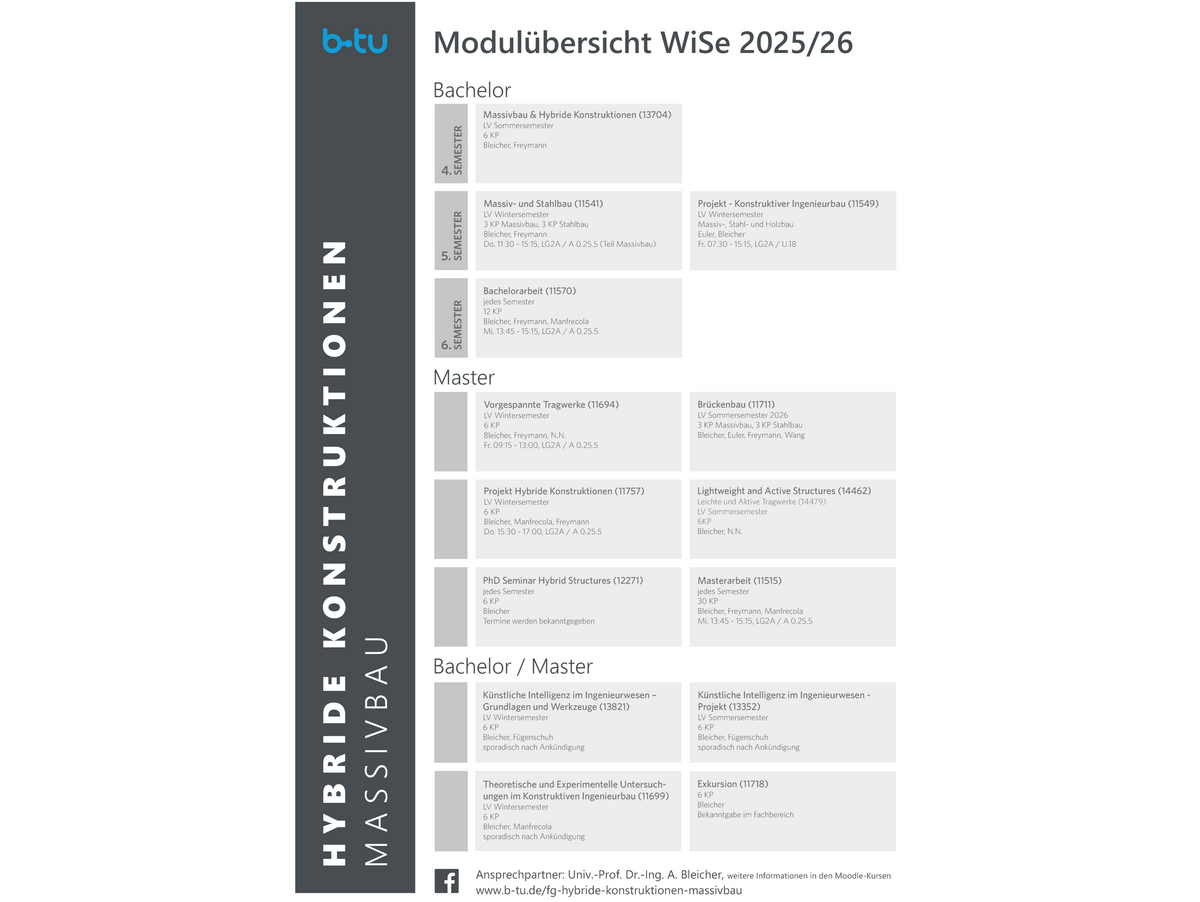 Die Übersicht der aktuellen Module finden Sie unter der Rubrik Lehre/Lehrveranstaltungen.