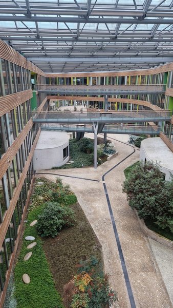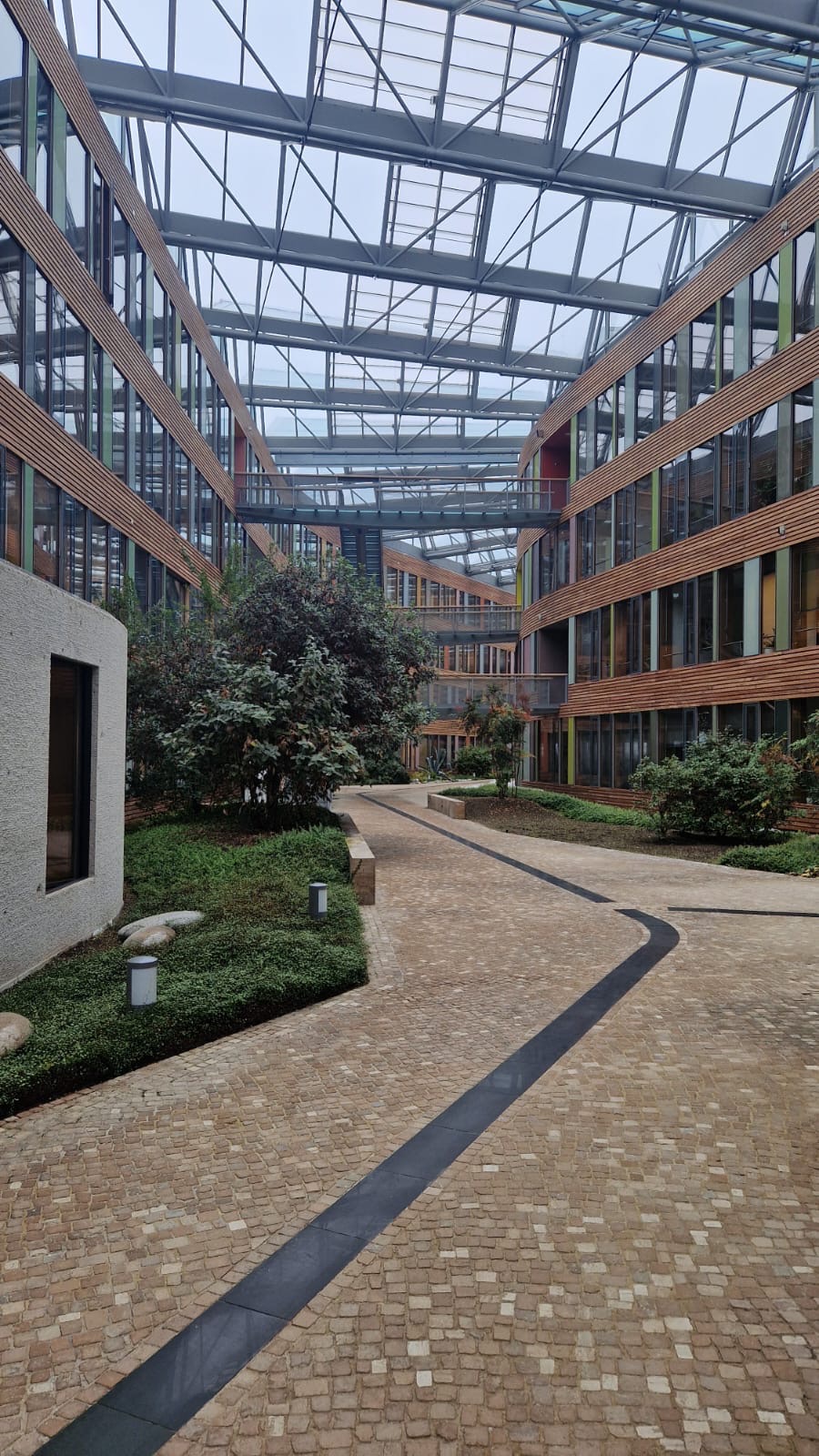 Die Exkursion war in zwei Teile gegliedert. Am ersten Tag stand eine Rundführung durch das UBA-Hauptgebäude sowie den im Jahr 2023 eröffneten Erweiterungsbau auf dem Programm. Dabei wurden die Energieversorgung und die architektonische Gestaltung der Gebäude thematisiert.