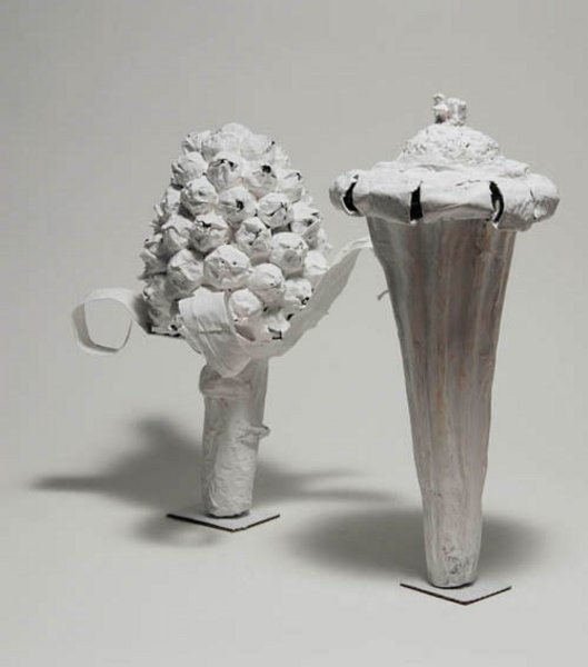 Die Formenwelt des Fotografen "Karl Blossfeldt" (1865 - 1932) bildet den Ausgangspunkt in diesem Seminar. Wie lässt sich eine zweidimensionale Fotografiedarstellung Blossfeldts in ein dreidimensionales Objekt interpretieren? Welche Wirkungen erzielt man mit unerschiedlichen Materialien? Und wie wird zum Schluss ein solches Objekt in mindestens 1,5 Meter Höhe gebaut? Die Aneignung von plastischen Grundlagen, sowie die Benennung von gestalterischen Grundbegriffen, werden in Einzel- und Gruppenarbeit entwickelt. Durch das Erarbeiten einer formalen Essenz und Weiterentwicklung der Idee entstehen unerwartete, überraschende, räumliche Objekte. Material und Idee gehen eine individuelle Symbiose ein.