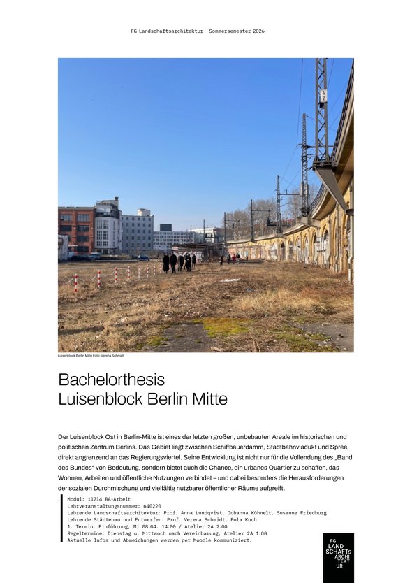 Fachgebiet Landschaftsarchitektur Prof. Dipl.-Ing. Anna Lundqvist