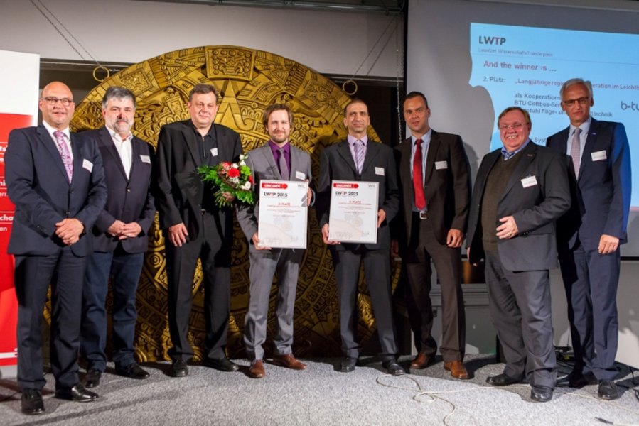 Im Rahmen der Verleihung des Lausitzer WissenschaftsTransferpreis 2015 wurde die "Langjährige regionale Kooperation im Leichtbau" zwischen der Forster System-Montage-Technik GmbH und dem Lehrstuhl Füge- und Schweißtechnik mit Herrn Sebastian Fritzsche als Projektverantwortlichem von der Wirtschaftsinitiative Lausitz mit dem zweiten Platz ausgezeichnet.