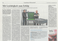 Der Projektpartner - Firma SMT - punktet mit den im Kooperationprojekt entwickelten Leichtbauteilen. Den Artikel vom 18.04.2017 finden Sie hier oder bei der Online-Redaktion der Lausitzer Rundschau.