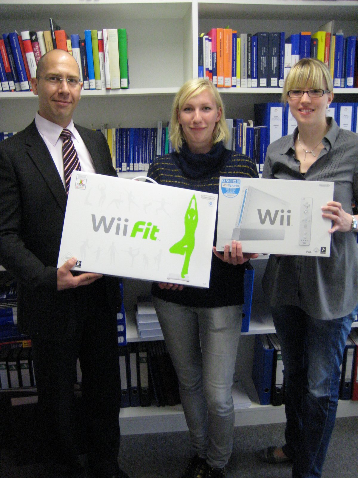 Im Anschluss an die Befragung hatten alle Teilnehmer die Möglichkeit an der Verlosung einer Nintendo Wii Konsole (inkl. Wii Balance Board) teilzunehmen, welche öffentlich am 04.02.09 im Audimax 2 der BTU Cottbus statt fand. Da die glückliche Gewinnerin, Frau Silvia Kalmutzki, am Tag der Verlosung leider nicht anwesend sein konnte, wurde der Gewinn nun nachträglich am Lehrstuhl überreicht.