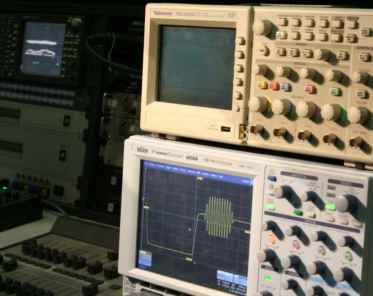 Die am Fachgebiet Medientechnik vorhandene Messtechnik gestattet es, Audio- und Videosignale umfangreich zu messen und zu analysieren. Mit dem digitalen Speicheroszilloskop Waverunner 6050A von Lecroy (500 MHz Bandbreite) und dem sehr kompakten digitalen Speicheroszilloskop TDS 2024B von Tektronix (200 MHz Bandbreite) können verschiedenste Signale gemessen und zeitlich, als auch spektral analysiert werden. Während der Waverunner die Analyse eines digitalen SD-SDI-Signals zulässt, können mit dem handlichen Tektronix Oszilloskop analoge Videosignale und deren Komponenten gemessen werden. Weitere Untersuchungen von analogen Videokomponenten und FBAS-Signalen erfolgen insbesondere in der Lehre mit dem kombinierten Waveformmonitor und Vectorskop 1741A von Tektronix. Für die digitale Analyse von SD- und HD-SDI-Signalen sowie der eingebetteten Audiosignale stehen das Kombigeräte WFM 700 von Tektronix und das handliche Messgerät Phabrix SxA AES zur Verfügung. Mit letzterem lassen sich auch beliebig editierbare Testbilder generieren.