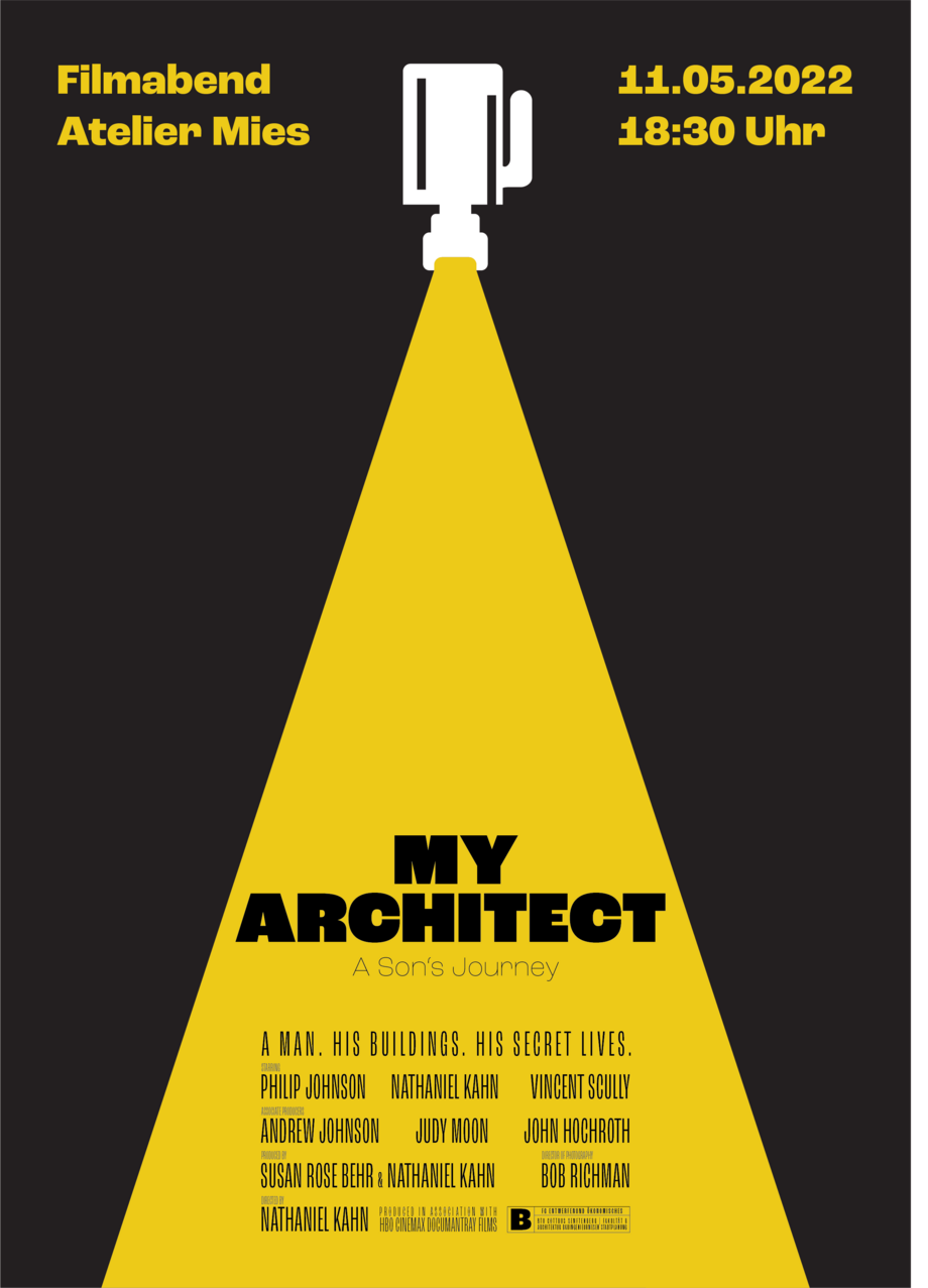 Am Mittwoch, den 11.05.2022 ab 18.30 Uhr, im Atelier Mies wollen wir zusammen mit euch den FIlm My Architect schauen. Ein Film von Nathaniel Kahn. Handlung des Films, ist eine Reise durch das Leben seines Vaters. Die Veranstaltung ist offen für alle Interessierte. Im Anschluss wollen wir zusammen über den Film diskutieren.