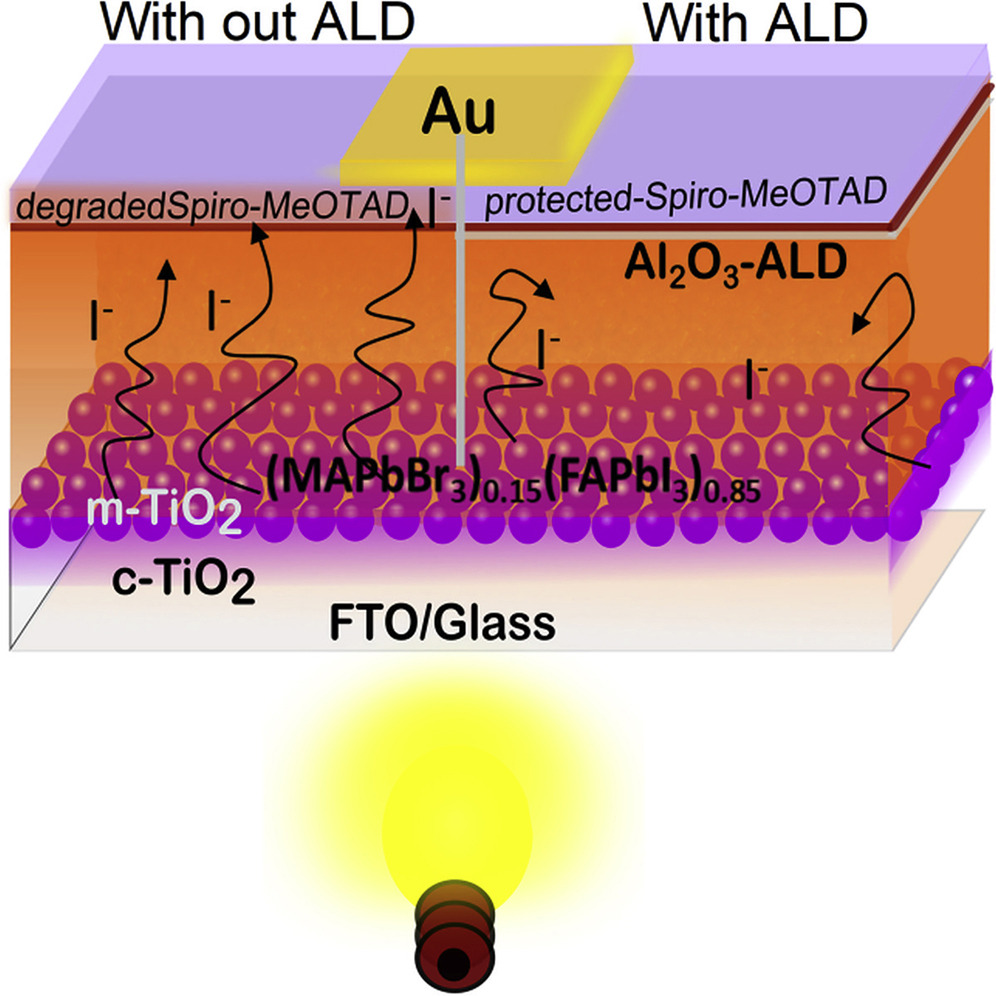 Atomic Layer-Deposited Aluminum Oxide Hinders Iodide Migration and Stabilizes Perovskite Solar Cells