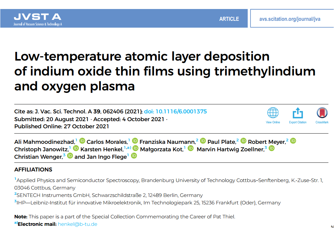 Veröffentlichung in »Journal of Vacuum Science and Technology A« veröffentlicht