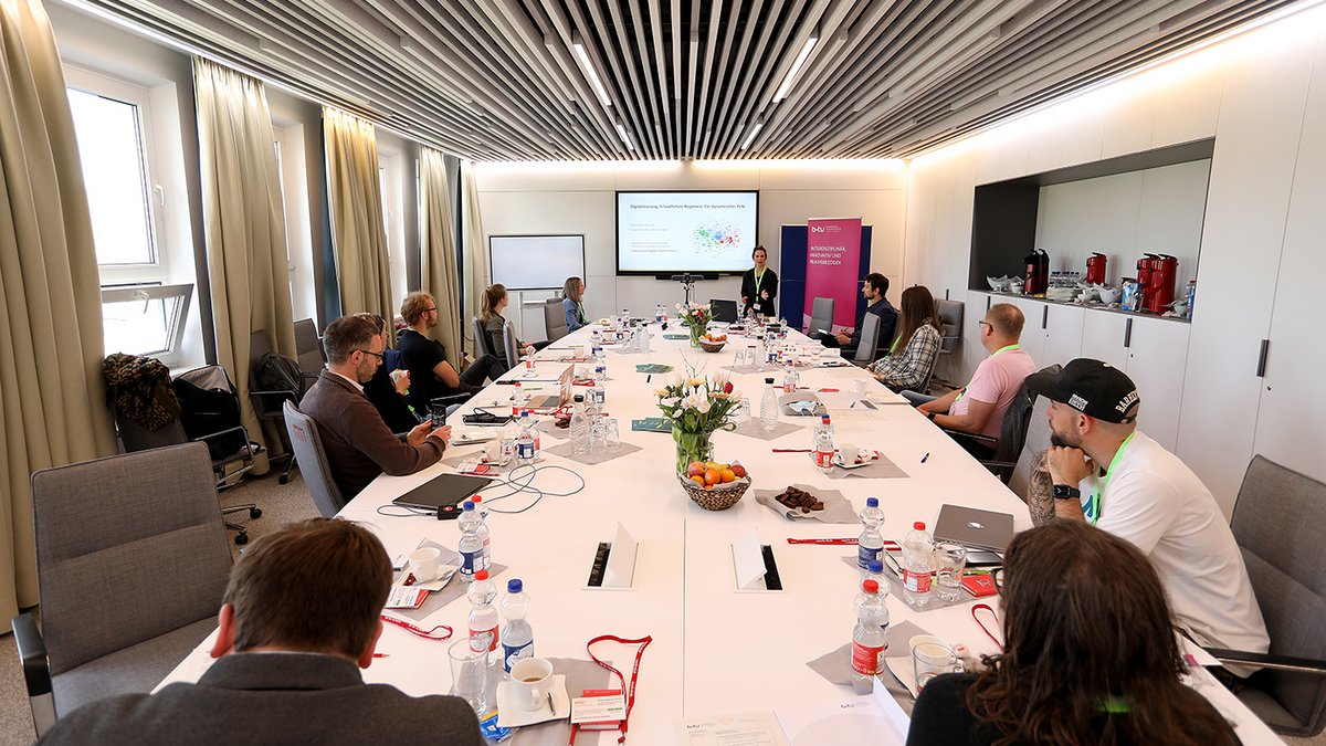Im Rahmen des 3. BULE+ Vernetzungstreffens vom 13.-15.03.2023 in Göttingen stellten V.-Prof. Dr. Julia Binder und Hanna Zeißig die Konzeption des Projekts "Digitale Pioniere in der ländlichen Regionalentwicklung“ sowie die Ergebnisse und Handlungsempfehlungen aus dem Projekt vor. Zusammen mit den weiteren Forschenden unterschiedlicher Disziplinen, die in der Forschungsfördermaßnahme „Ländliche Räume in Zeiten der Digitalisierung“ vereint sind, konnten Forschungs- und Projektergebnisse ausgetauscht und Synergien hergestellt werden.