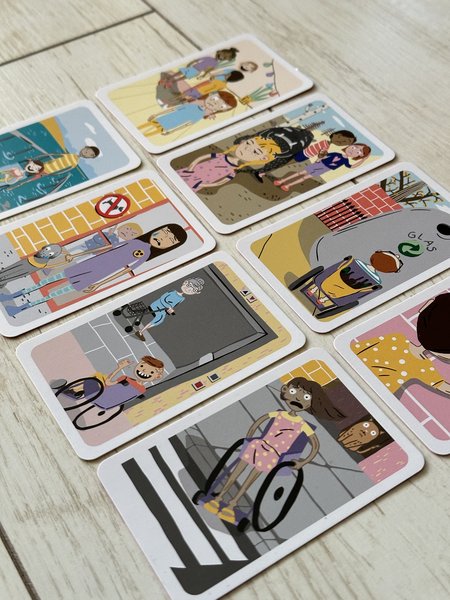 Leider gelingt es dem Barriereteufel immer wieder, Barrieren zu errichten. Zum Glück gibt es aber unseren Inklusionsengel, der für jedes Problem eine Lösung hat. Die Spieler:innen müssen aber das Problem erkennen und die richtige Lösung für die Überwindung der Barrieren herausfinden. Dieses Kartenspiel schärft dabei den Blick für das Erkennen von Alltagsproblemen von Menschen mit unterschiedlichen Behinderungen und ist sehr kurzweilig. Teufel und Engel mischen sich immer wieder in den Spielverlauf ein.