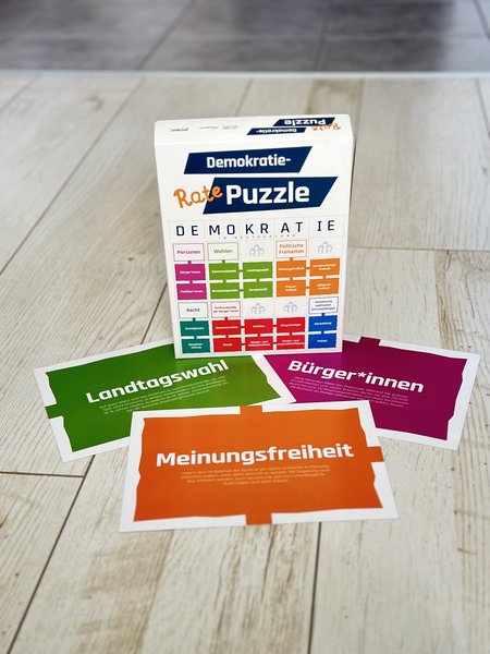Um etwas in unserer Gesellschaft bewegen zu können, sind Kenntnisse der Demokratie in Deutschland hilfreich: Welche Rechte und politischen Freiheiten besitze ich? Und wie kann ich mich konkret einbringen – sei es bei Wahlen oder mit anderen Formen der Beteiligung? Das Demokratie-Rate-Puzzle zielt mit seinem spielerischen Zugang auf eine systematische Zusammenstellung der zentralen Elemente der Demokratie in Deutschland, die anschließend eine darauf aufbauende und tiefergreifende Diskussion ermöglicht. Das Spiel ist konzipiert für den Demokratietag in der Schule und die Jugendbildungsarbeit. Neben der Funktion als Ratespiel können die Begriffe auch als Erzählkarten genutzt werden.