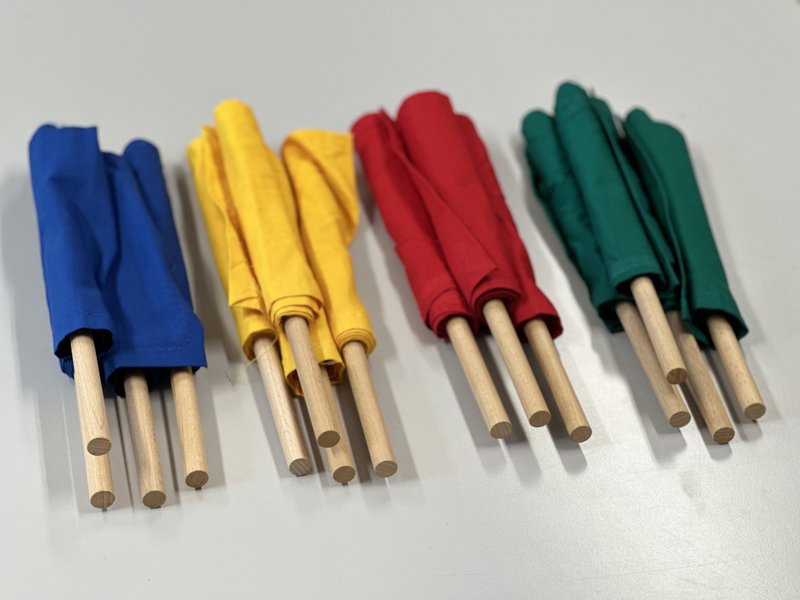 - Kommunikationsübungen: Verwende die Flaggen, um nonverbale Kommunikation zu trainieren. Jedes Team erhält eine Aufgabe, die nur durch das Heben oder Senken der Flaggen gelöst werden kann. So wird die Fähigkeit geschult, Informationen ohne Worte zu vermitteln.