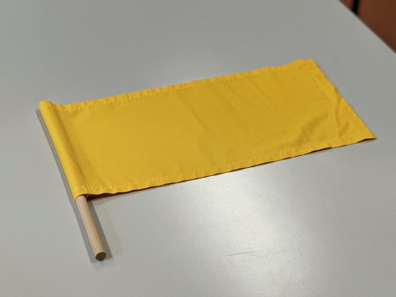 Im Labor für Didaktik und Methoden können ab 15 verschiedenfarbige Stoffflaggen ausgeliehen werden. Diese Flaggen bestehen aus einem stabilen Holzstab und sind in den Farben Gelb (4x), Blau (4x), Rot (3x) und Grün (4x) erhältlich.