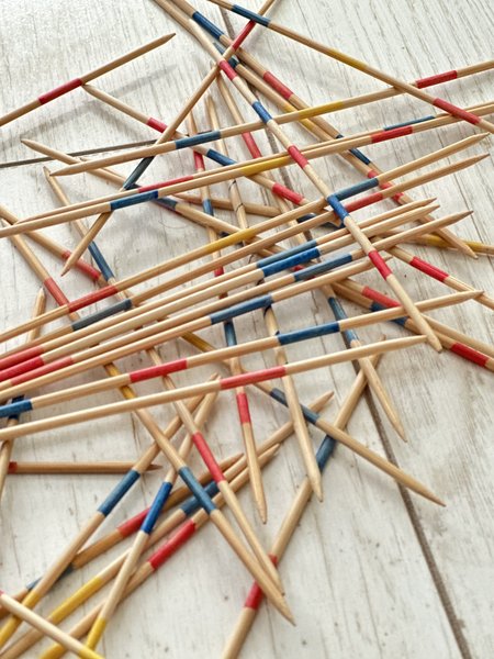 - Technik: Drücke mit dem Finger auf die Spitze des Stäbchens, um es sicher wegzunehmen. Bewegt sich dabei ein anderes Stäbchen, ist Dein Zug beendet und der:die nächste Spieler:in ist dran.