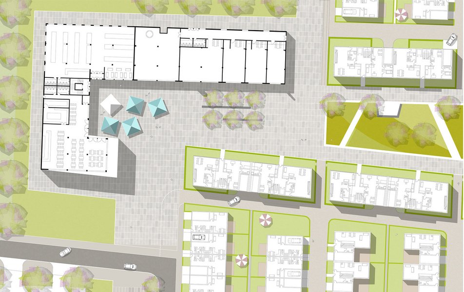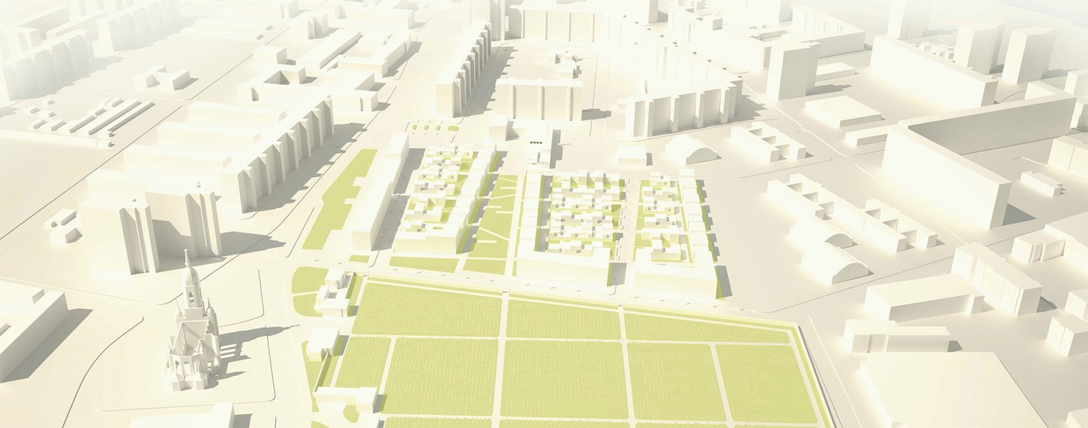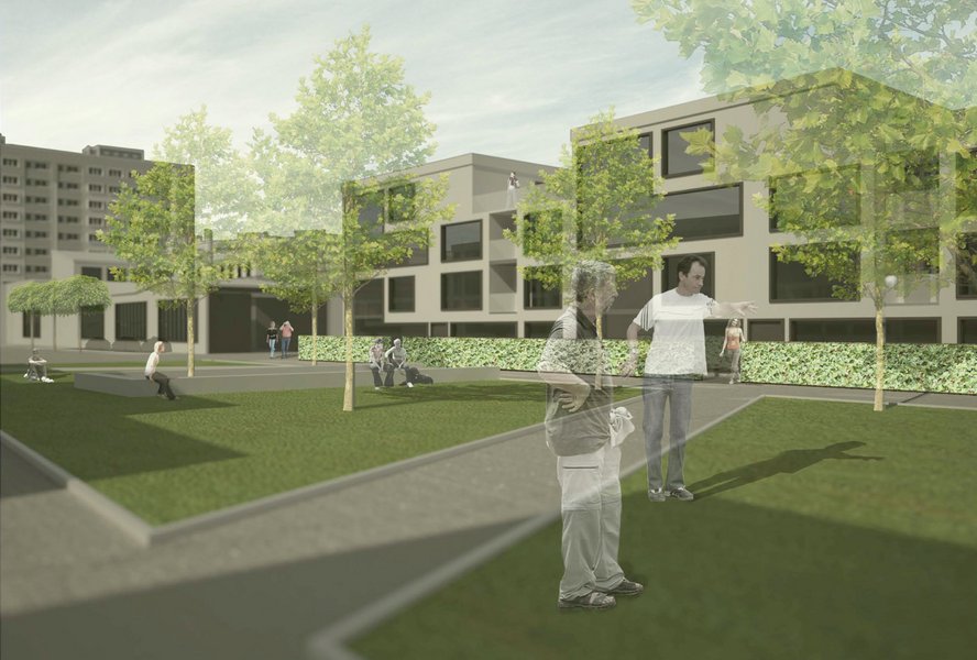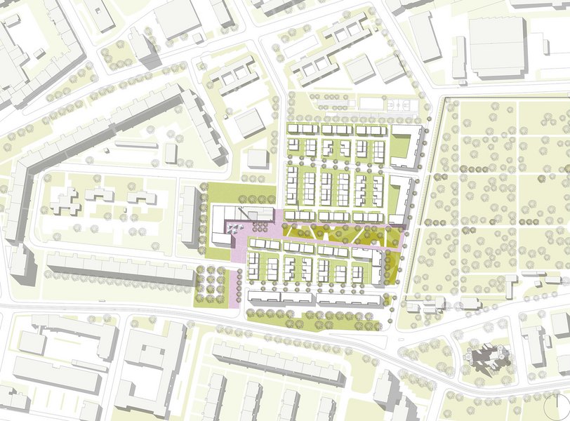 Die hier examplarisch gezeigte Arbeit von Silke Heiduk und Ulrich Pappenberger ergänzt mit vielfältigen Typologien und ineinader greifenden öffentlichen und grünen Freiraumstrukturen das heterogene Quartier am Trinitatisfriedhof.
