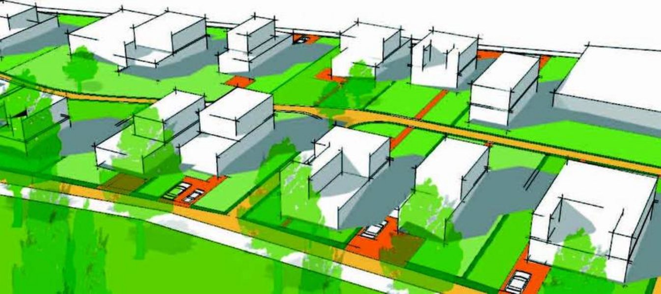 Dadurch wird das Entwurfsgebiet wiederum in Baufelder strukturiert. Hierbei bildet das Erschließungsraster eine feste Ordnung. Innerhalb der Schollen lassen sich je nach Bedarf verschiedene Parzellengrößen definieren.