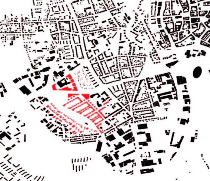 Das vorgefundene Entwurfsgebiet wies in unseren Augen eine Unübersichtlichkeit und Unregelmäßigkeit auf. Dies ist unserer Meinung nach auf die undefinierbare Nutzung des ehemaligen Bahngeländes (Ansammlung von Lehrstehende leerstehenden Werkshallen, Schrottplatz, usw.) und auf dem Bruch des von Ludwig Winter 1889 geplanten Fluchtlinienplanes zurückzuführen.