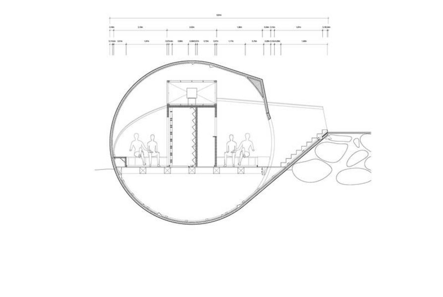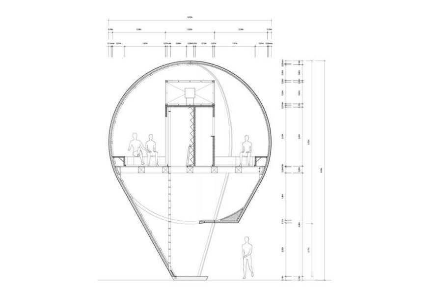 Das 22403 ist ein neun Meter langes/hohes Schalentragwerk aus GFK mit einer hölzernen Plattform im Inneren. Die Außenhülle ist dreigeteilt. Die Teilschalen werden durch den einfachen Zusammenbau mittels Stahlklammern zu einem in sich stabilen Raumkörper zusammengefügt.