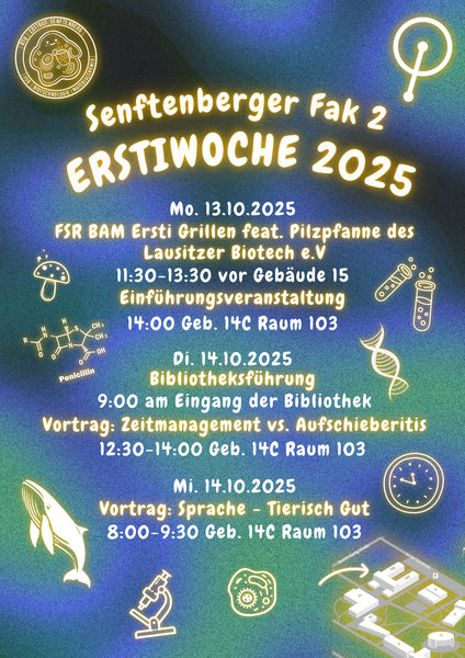 Semesterauftakt in Senftenberg am 16.10.2024 Veranstaltung mit Beitrag des FSR Biotechnologie-Materialchemie
