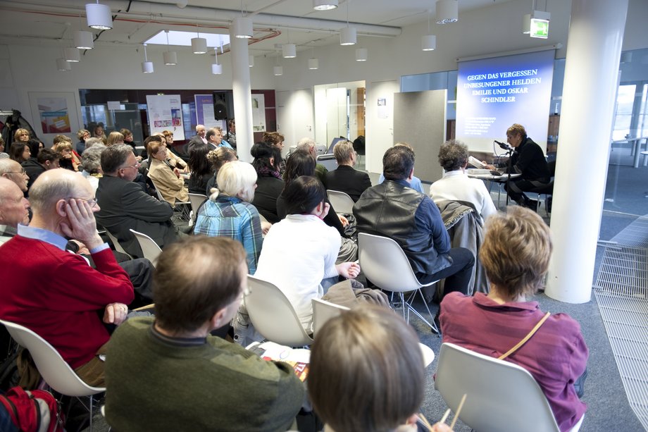 Im Rahmen des Leseherbstes der Stadt Cottbus war Prof. Erika Rosenberg auf ihrer Lesereise „Gegen das Vergessen“ am 10. November 2009 im IKMZ zu Gast. Sie erinnerte an die Rettung von mehr als 1.300 Juden durch Oskar Schindler und seine Frau Emilie.