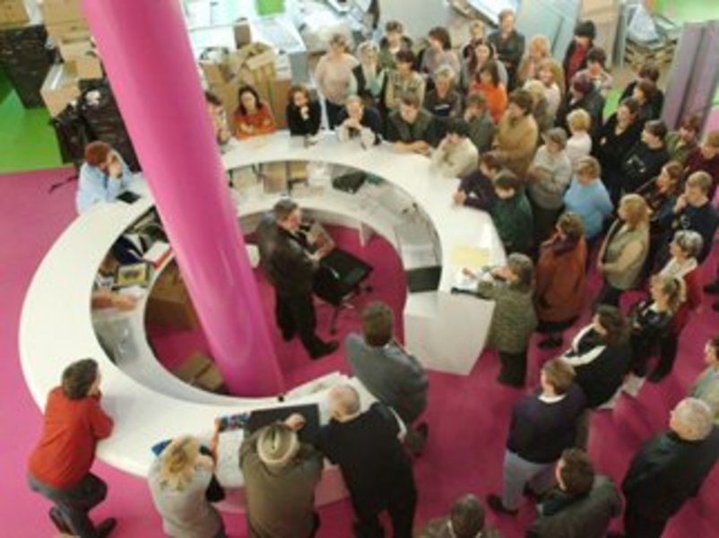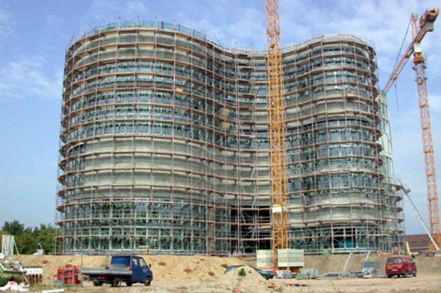 In 3 Jahren wurde das Fundament gegossen, die beiden Kerne errichtet, die einzelnen Etagen fertiggestellt und auch die markante Glasfassde angebracht. Um diese Arbeit nicht zu vergessen, zeigt die Baugeschichte die Entstehung des IKMZ-Gebäudes.