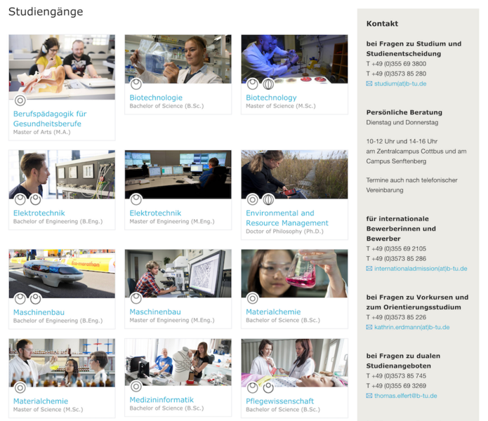 Sollten Ihnen Fehler auffallen oder sollten Sie Verbesserungsvorschläge haben, kontaktieren Sie uns bitte via websupport(at)b-tu.de.