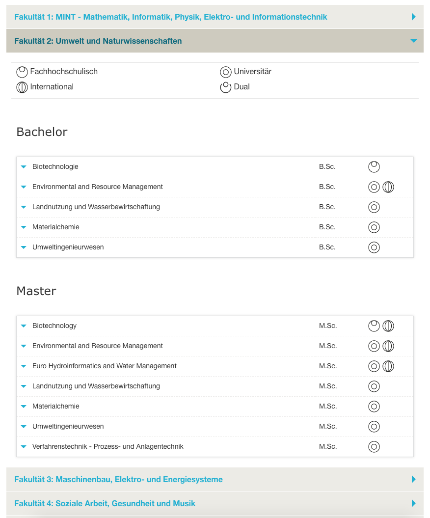 - Neugestaltung der Ausgabe von Kontaktübersichten für Studiengänge, unter https://www.b-tu.de/studierende/studierendenservice/ansprechpartnerinnen#c183057 (generiert aus Studiengangsdatenbank)