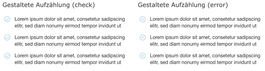 - nichtnummerierte Aufzählungen können mit einer Grafik aufgewertet werden, zur Auswahl stehen die Optionen "check" oder "error"