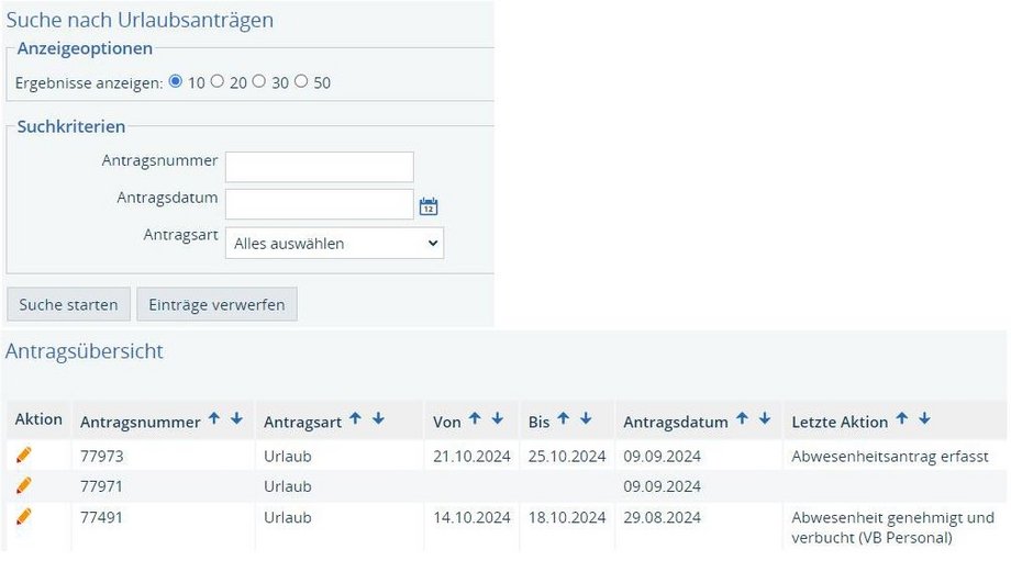Anleitungen sowie Informationen zur workflowgestützten Beantragung und Genehmigung von Abwesenheiten