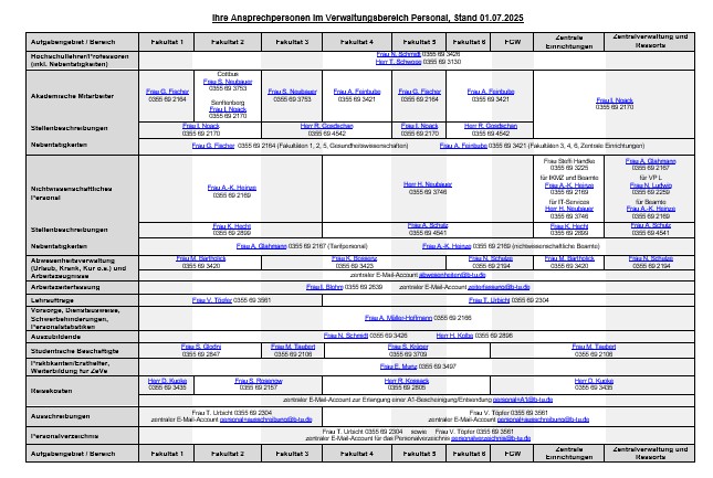 Ihre Ansprechpersonen im Verwaltungsbereich Personal