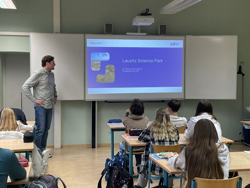 Mitte November hatten der Lausitz Science Park und das Energie-Innovationszentrum Cottbus (EIZ) die Gelegenheit, den Strukturwandel in der Lausitz zwei 8. Klassen des Niedersorbischen Gymnasiums näherzubringen.