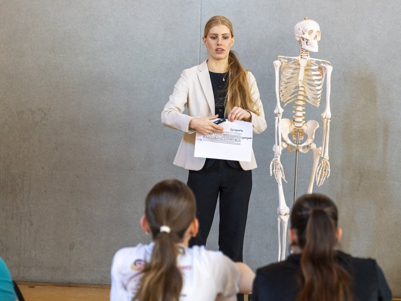 Anfang und Mitte Januar 2026 gab es an der Lausitzer Sportschule die ersten beiden Biomechanik-Workshopeinsätze unserer Studentin Smilla Kuhnt (cand. B.Sc. Medizintechnik). In den Workshops demonstrierte sie die wichtigsten Unterschiede einer gesunden wie auch ungesunden Belastung von Gelenken. Die Schüler*innen der 12. Klasse konnten in kleinen Gruppen unterschiedliche Übungen selber durchführen und so lernen, welche Bewegungen und Bewegungsabläufe gerade für sie als Leistungssportler*innen besonders wichtig sind.