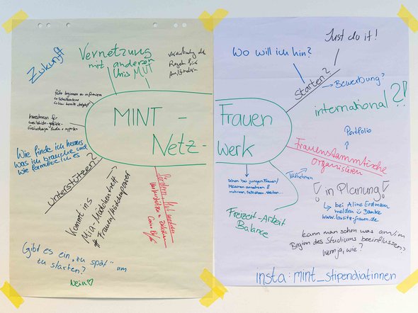 Im Rahmen unseres 2. MINT-Frauen-Netzwerktreffen am 03.06.2024 trafen sich unsere MINT-Frauen für einen interaktiven Workshop. Ziel war es die Impulse aus unserem ersten Treffen noch einmal zu reflektieren und die Wünsche und Ziele des Netzwerks im ersten Schritt in kleinen Gruppen in Mindmaps zu visualisieren. Unter Gleichgesinnten in fünf Gruppen wurden die Schwerpunkte Zukunft mit und für MINT-Frauen in der BTU; Unterstützung innerhalb der Universität; Planung rund um die Karrierewege von MINT-Frauen sowie der Schwerpunkt Gleichgesinnte gesucht und vernetzt bearbeitet. Der fünfte Schwerpunkt bedurfte viel Kreativität für die ersten Züge eines eigenen MINT-Logo's.