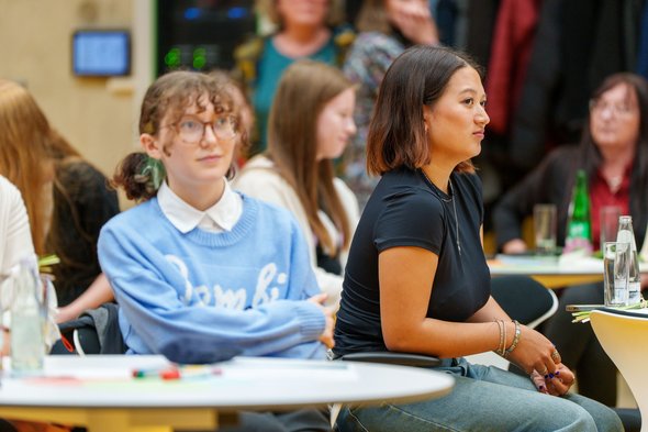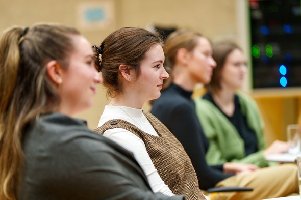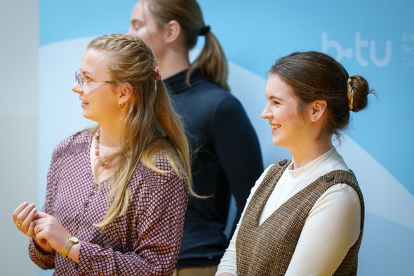 Nach dem Impulsvortrag von Frau Hoppe folgte die feierliche Übergabe der MINT-Frauen-Stipendien an neun Studentinnen, die zum Oktober 2024 ihr Erststudium an der BTU aufnahmen. Die Übergabge wurde modetiert vom Vize-Präsident für Studium und Lehre Prof. Peer Schmidt, der sehr einfühlsame und warme Worte für unsere neuen Stipendiatinnen fand.
