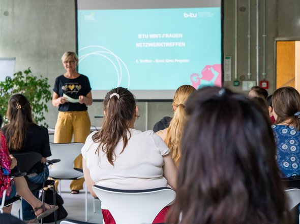 In unserem 4. Netzwerktreffen drehte sich alles um das Thema "Geek Girls". Unsere BTU MINT-Stipendiatinnen stellten ihre Geek Girls-Projekte im Rahmen des Netzwerktreffens vor. In enger Zusammenarbeit mit der MINT-Botschafterin der Fakultät 2, Dr.-Ing. Ramona Riedel, wurden hochwertige Workshop-Angebote für Schulen entwickelt, die im aktuellen Schuljahr 2025/26 in den ersten Schulen in Cottbus realisiert werden.