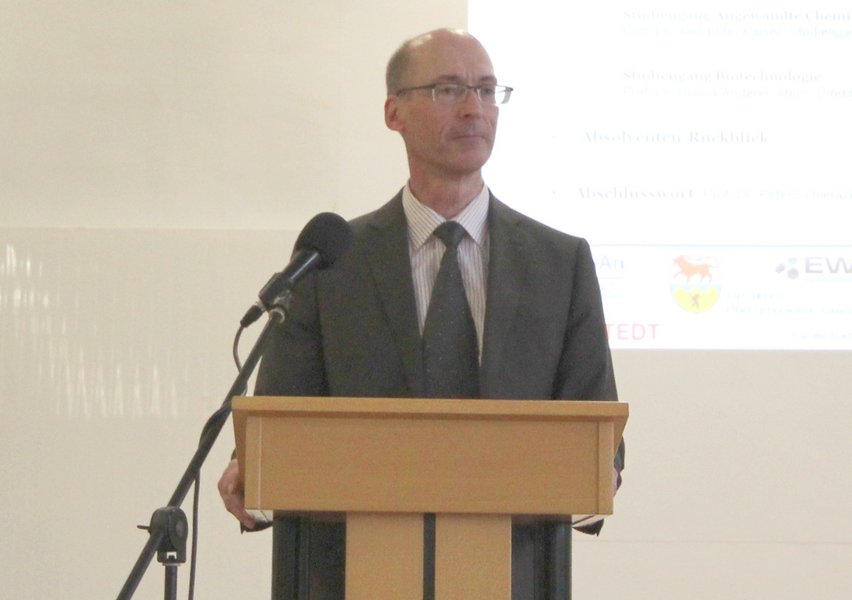 Der Prodekan der Fakultät für Umwelt und Naturwissenschaften, Prof. Dr. Peter Schierack, hieß zur feierlichen Zeugnisübergabe willkommen und freute sich über einen gut gefüllten Saal. Die Festrede hielt Prof. Dr. Günter H. Schulz, ehemaliger Präsident der Hochschule Lausitz und Professor für Mikrobiologie.