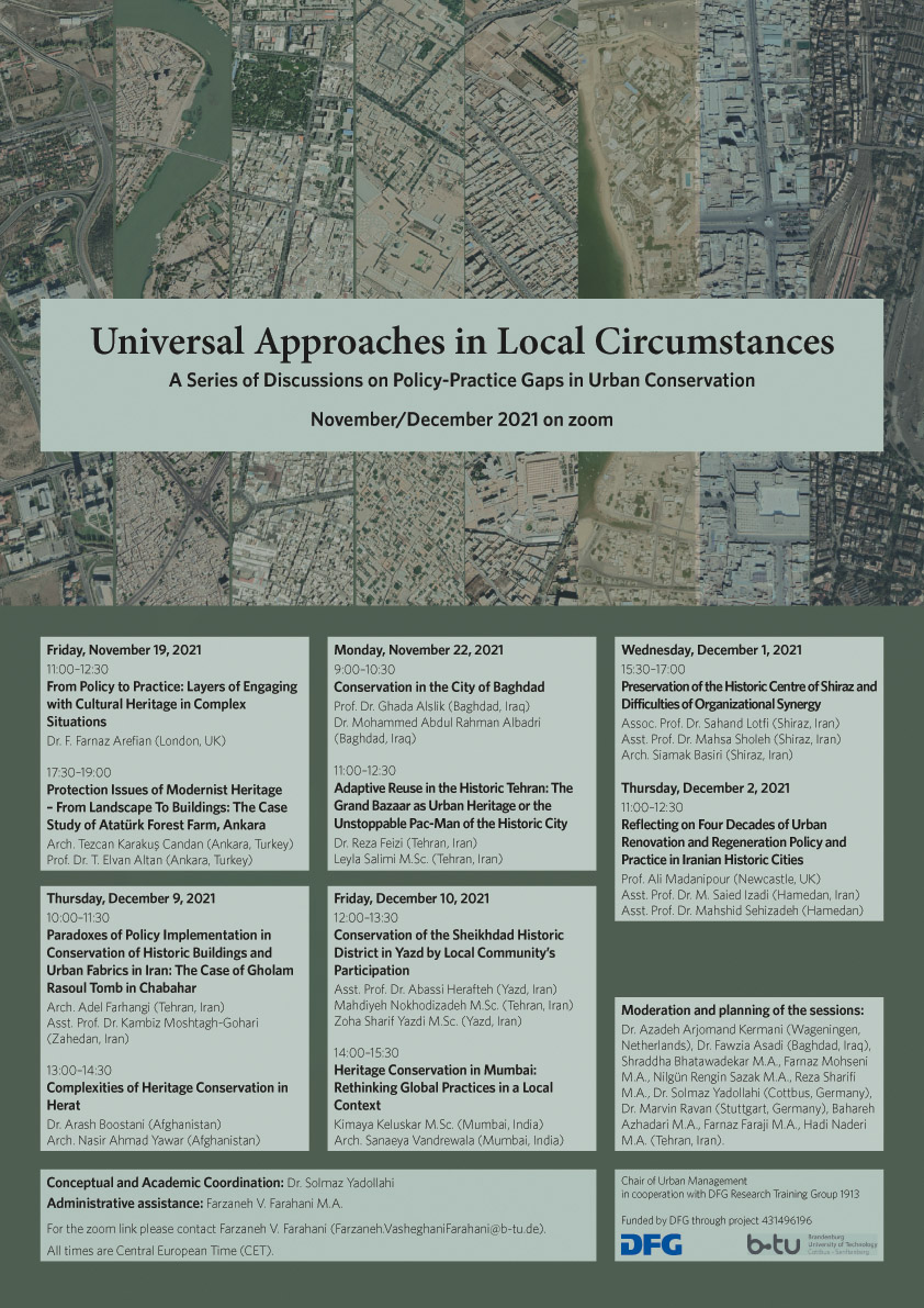 This series of events is cooperatively organized by the Chair Urban Management and the DFG Training Group 1913 “Cultural and Technological Significance of Historic Buildings” in the framework of the DFG project “Assembling Iran's Urban Heritage Conservation Policy and Practice: Problematised in Tehran”.