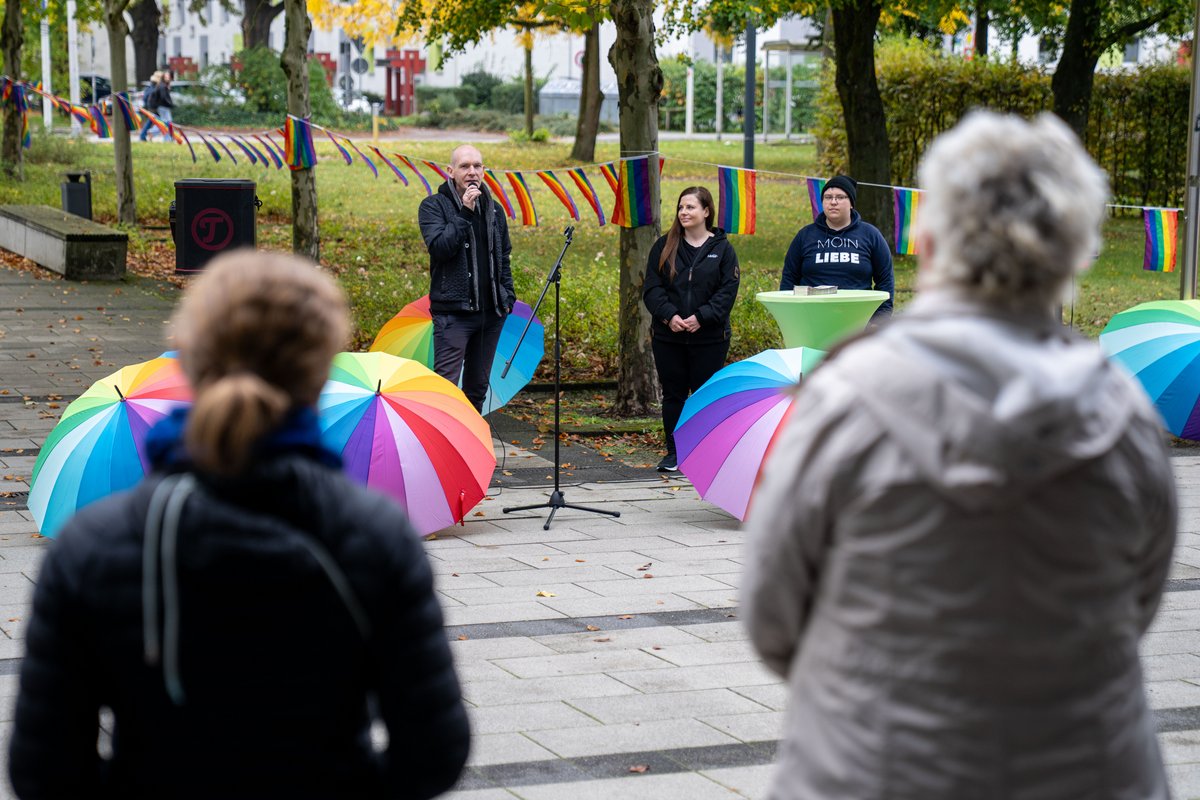 Unter dem Motto „Vereint in Frieden und Vielfalt“ wurden mit dem traditionellen Hissen der Regenbogenflagge am 13.10.2025 um 11 Uhr durch Jenny Scholka (Stellvertretende Zentrale Gleichstellungsbeauftragte), Simone Ruhwald (Referentin Diversität und Gesundheitsförderung), Isa Zenker (Stura Referat Diversität und Soziales) und Christian Müller (CSD Cottbus e.V.) die zwei CSD-Aktionswochen für Cottbus und die Niederlausitz eröffnet. Damit bilden wir den Auftakt zweier Wochen, in denen wir wirkungsvoll für die Rechte und die Sichtbarkeit von LGBTQ+ eintreten und setzen ein Zeichen für Vielfalt, Liebe und gegenseitigen Respekt!