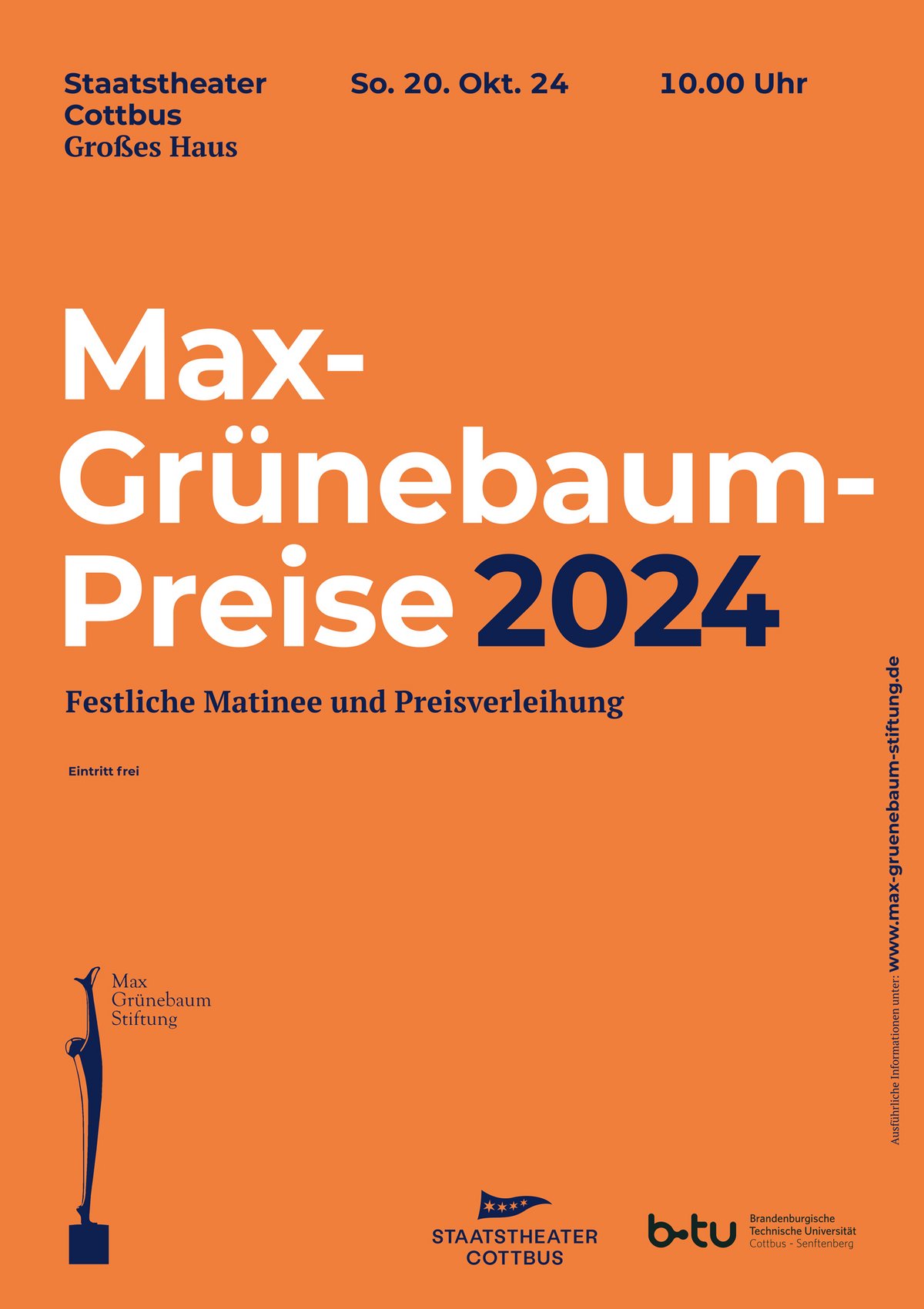 Die Max Grünebaum-Stiftung wurde 1997 von den in England lebenden Enkeln des Cottbuser Tuchfabrikanten und Ehrenbürgers Max Grünebaum gegründet. Die Stiftung fördert die künstlerische und wissenschaftliche Nachwuchsarbeit in Cottbus, insbesondere durch die Unterstützung des Staatstheaters Cottbus und der BTU Cottbus-Senftenberg. Mit den Preisen setzt die Stiftung ein starkes Zeichen für die Förderung des kulturellen und wissenschaftlichen Austauschs zwischen Cottbus und England.