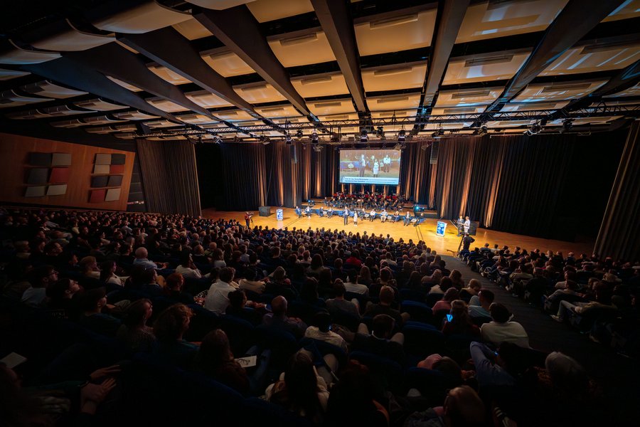 Auch die Bürgermeister der Uni-Städte, Doreen Mohaupt und Andreas Pfeiffer, begrüßten „ihre Erstis“. In einem Quiz-Duell priesen sie ihre Städte an. Zuvor gaben zwei studentische Vertreterinnen Tipps für den Studienstart. RBB-Moderator Christian Mattheé führte durchs Programm, das durch Musiker*innen des Studiengangs Instrumental- und Gesangspädagogik begleitet wurde und mit der symbolischen Einschreibung von Vertretern der sechs Fakultäten der BTU auf der Bühne endete. Rund 1.300 Gäste waren mit dabei.