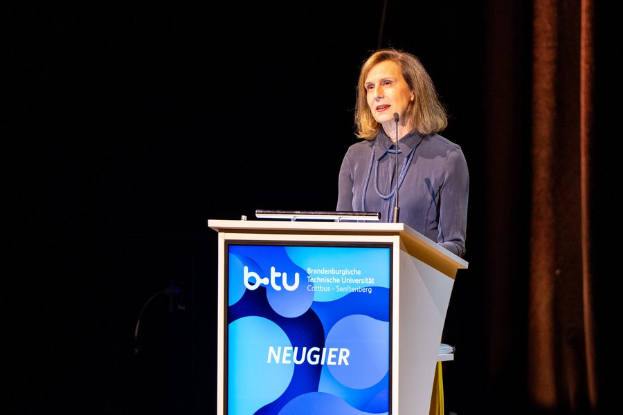 Das Cottbuser Stadtzentrum war zum Wochenauftakt Ziel für viele der neuen Studierenden der BTU Cottbus-Senftenberg, die sich mit ihren Freunden und Familien auf den Weg gemacht hatten, um bei der traditionellen Immatrikulationsfeier in der Stadthalle mit dabei zu sein. Auf dem Vorplatz wurden sie durch Trachtenträgerinnen mit Brot und Salz begrüßt, drinnen durch die BTU-Präsidentin Gesine Grande. Sie hieß die „Erstis“ mit einer Festrede zum Motto NEUGIER willkommen: „Alle neuen Studierenden sind ab heute Teil einer Gemeinschaft, die sich ein Leben lang die ewigen 'Kinderfragen' nach dem wie, warum und wieso stellt. Ohne diese Neugier gäbe es keinen wissenschaftlichen Fortschritt, wüssten wir nicht, warum ein Apfel vom Baum fällt, der Mond aber nicht auf die Erde. Wir hätten keine KI, kein Periodensystem und keine Antibiotika. Herzlich willkommen an der BTU und in der Welt der Wissenschaft.“