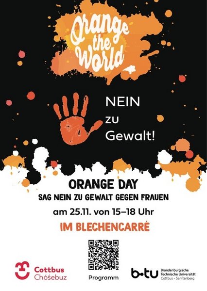 Im Anschluss daran findet von 15 bis 18 Uhr im BlechenCARRÉ eine begleitende Veranstaltung mit Musik, kreativen Angeboten für Kinder und moderierten Gesprächen statt. Zahlreiche Organisationen präsentieren ihre Angebote zur Gewaltprävention und Beratung. Hierzu gehören neben einem Stand der BTU unter anderem auch die Fachstelle Gewaltprävention, Amnesty International Cottbus, das Frauenzentrum Cottbus e.V. mit MiA, das Frauenhaus Cottbus, und viele weitere. Die Polizei Cottbus bietet zusätzlich anonyme Einzelberatungen in einem separaten Raum vor Ort an.