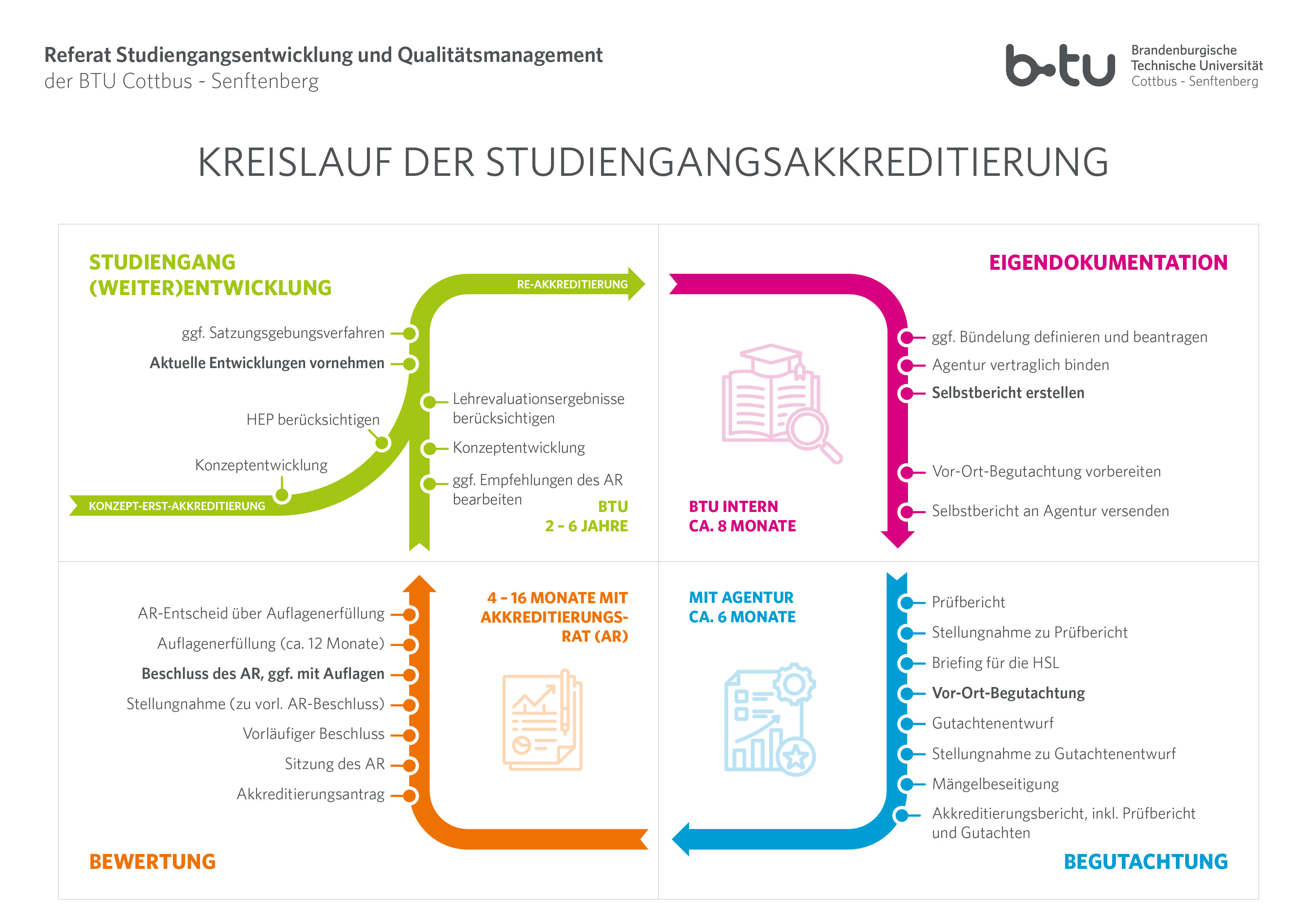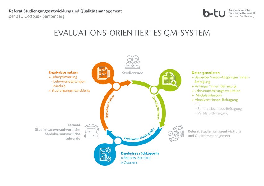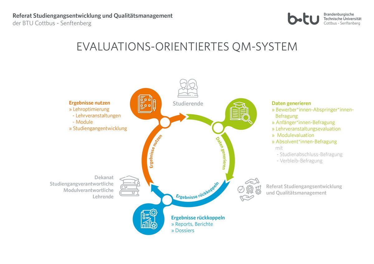 Die Qualitätssicherung und -entwicklung im Anwendungsbereich von Studium und Lehre an der BTU beruht auf der im Jahr 2020 novellierten Satzung zur Evaluation von Lehre und Studium i.R.d. universitätsweiten Qualitätsmanagements (QM).