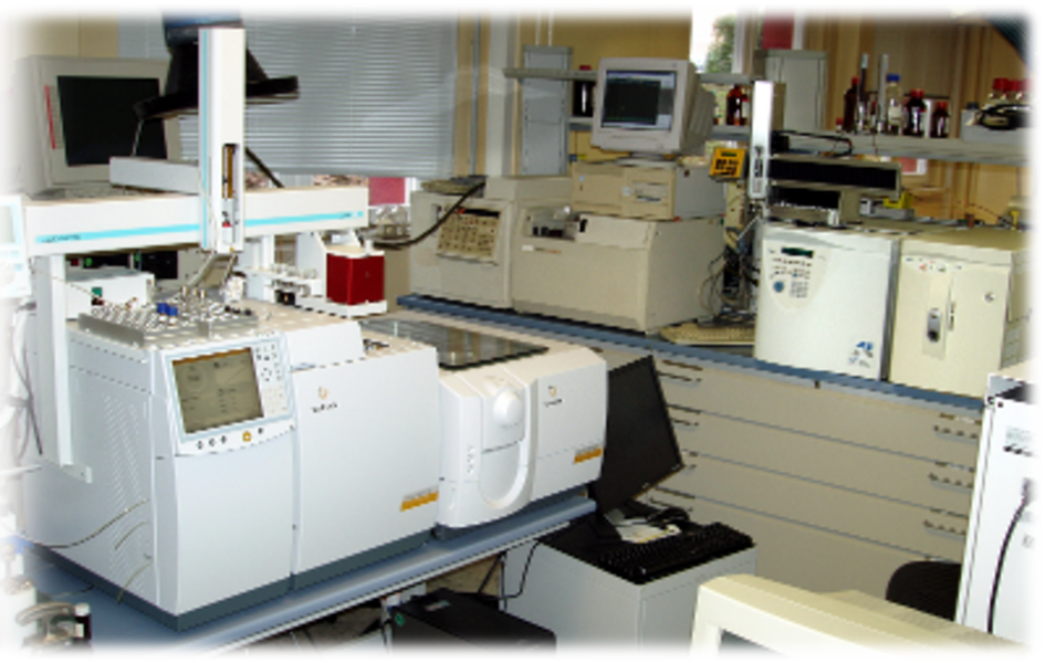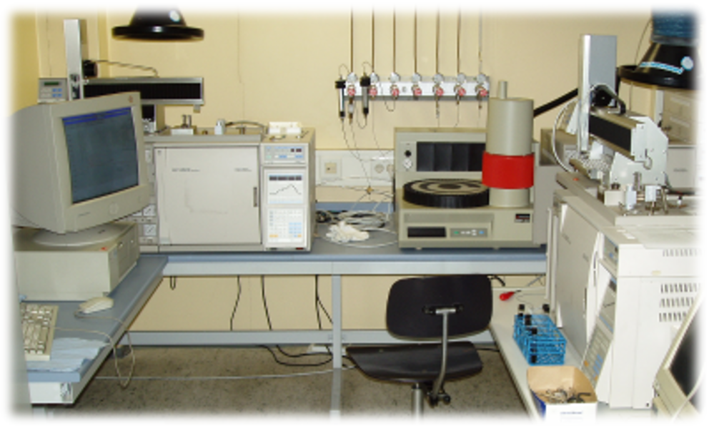z.B. Routineanalysen, MKW´s in Boden u. Wasser - 2 GC´s mit Quadrupol-Massenspektrometer (MD 800, Fa. Thermoquest) mit EI+ (Massenbereich 2-800 amu)